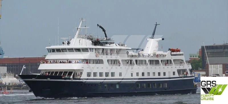 The steel pilot house/bridge structure is forward, with the officers' cabin and balcony "S" suites in line abaft.