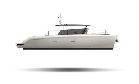 καμπίνα για πρόσθετους επισκέπτες ή ένα τεράστιο lazarette για αποθήκευση, ιδανικό για εγκαταστάσεις live. Γεφυρώνοντας τις γάστρες, η καμπίνα του ιδιοκτήτη πλήρους δέσμης εκτείνεται στην περιοχή του μέσου του πλοίου, παρέχοντας πολυτελή όγκο με κυκλοθυμική, προσαρμόσιμη διακόσμηση που τονίζεται με λεπτομέρειες από άνθρακα. Οι φεγγίτες πλημμυρίζουν τους χώρους με φως, ενώ τα πάνελ με κηρήθρα συμβάλλουν σε μια ελαφριά αλλά κορυφαία αίσθηση. Συνολικά, το εσωτερικό φιλοξενεί έως και έξι σε δύο σταθερές καμπίνες συν έναν ευέλικτο τρίτο χώρο, με σαλόνια ενιαίας διαρρύθμισης που ρέουν απρόσκοπτα σε εξωτερικούς χώρους.