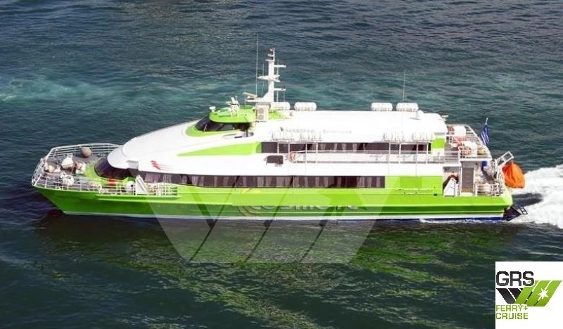 LOA 41.38 m Beam 10 m Draft 1.69 m Total passenger capacity 341 1 Deck Built in year 1996 Design is : 40M Flying Cat Class : Registro Italiano Navale Flag : Greece Gross Tonnage of 467 and Nett Tonnage of 378 Speed : 36 knots Engines : 2 x M.T.U. / MTU Friedrichshafen Gmbh - GEU 16V396TE74L, 4,000 kw, 1,900 rpm, Propellers 1 Water Jet (Port Side) + 1 Water Jet (Starboard)