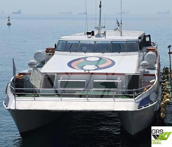 LOA 29.01 m Beam 9.5 m Draft 1.34 m Total passenger capacity 285 Built in year 1998 Flag : Korea, South Gross Tonnage of 153 and Nett Tonnage of 80 Speed : 16.8 knots Engines : 2 x Cummins / Cummins Engine Co Inc KTA-19-M, 954 kw, 1,800 rpm, Propellers 1 Fixed Pitch (Port Side) + 1 Fixed Pitch (Starboard)