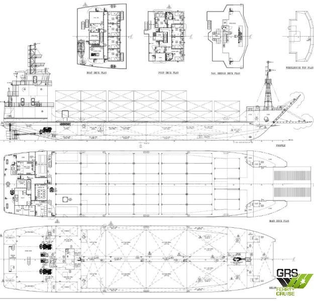LOA 68 m Beam 16 m Draft 3.5 m Built in year 2024 Class : Bureau Veritas Total 14 berths 4 cabins with 1 berth 5 cabins with 2 berths Speed : 11 knots Engines : 2 x Yanmar 6EY17W, 1,450 rpm, Propellers 2 Fixed Pitch (Starboard Outer) Auxiliaries Engines : Thruster : 1 x Kamome TFA-50DHN 50T Capable of supplies of 340m³ Fuel Oils and 183m³ FW